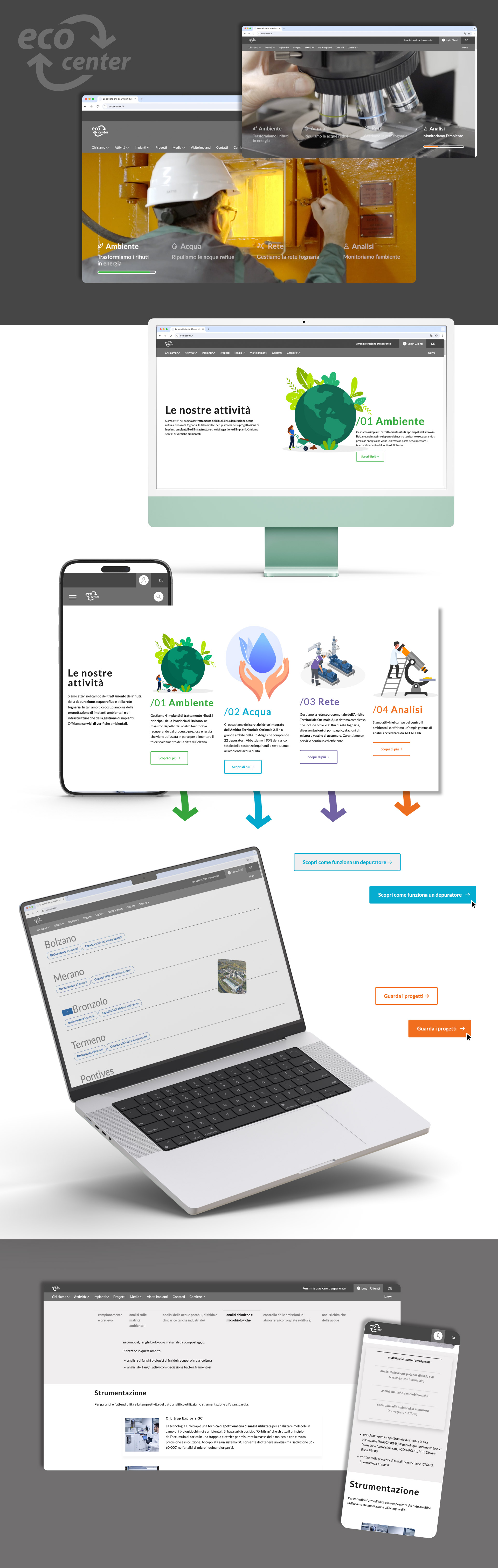 Il progetto per eco center, società pubblica con sede a Bolzano attiva nel settore ambientale, nasce con l’obiettivo di comunicare in modo chiaro e contemporaneo l’identità e le attività di una realtà complessa e strategica per l’Alto Adige.