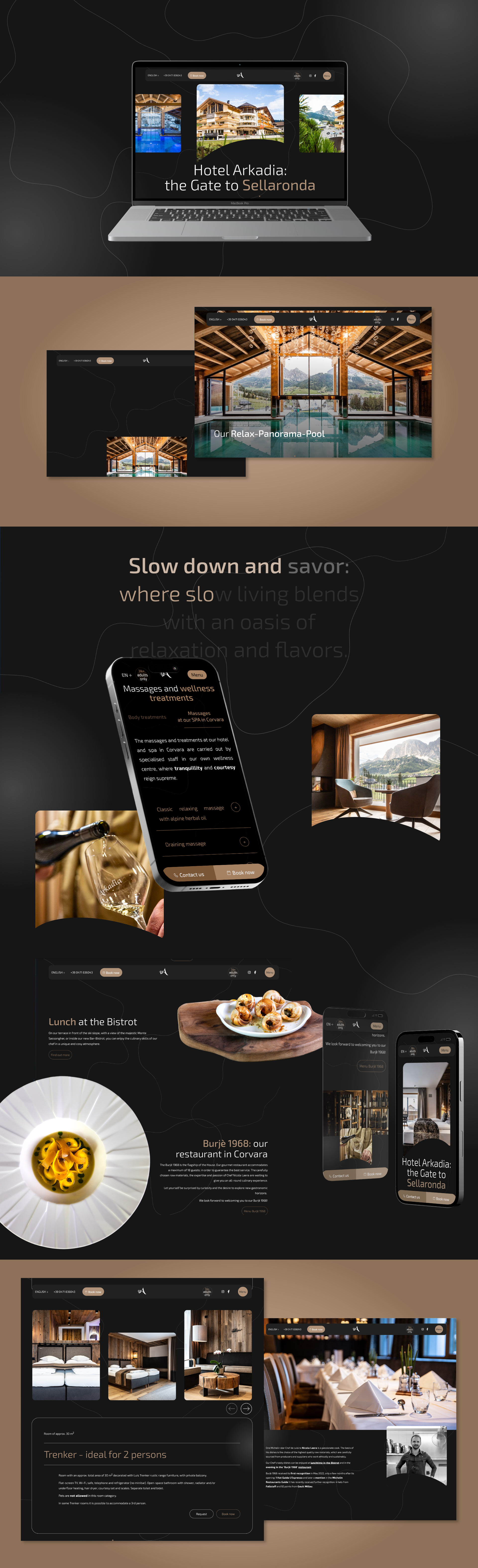 Per il nuovo sito dell’Arkadia abbiamo pensato di creare un progetto sofisticato, ma al tempo stesso funzionale, emozionante e innovativo per comunicare al meglio il core business di questo hotel 4 stelle in Alta Badia.