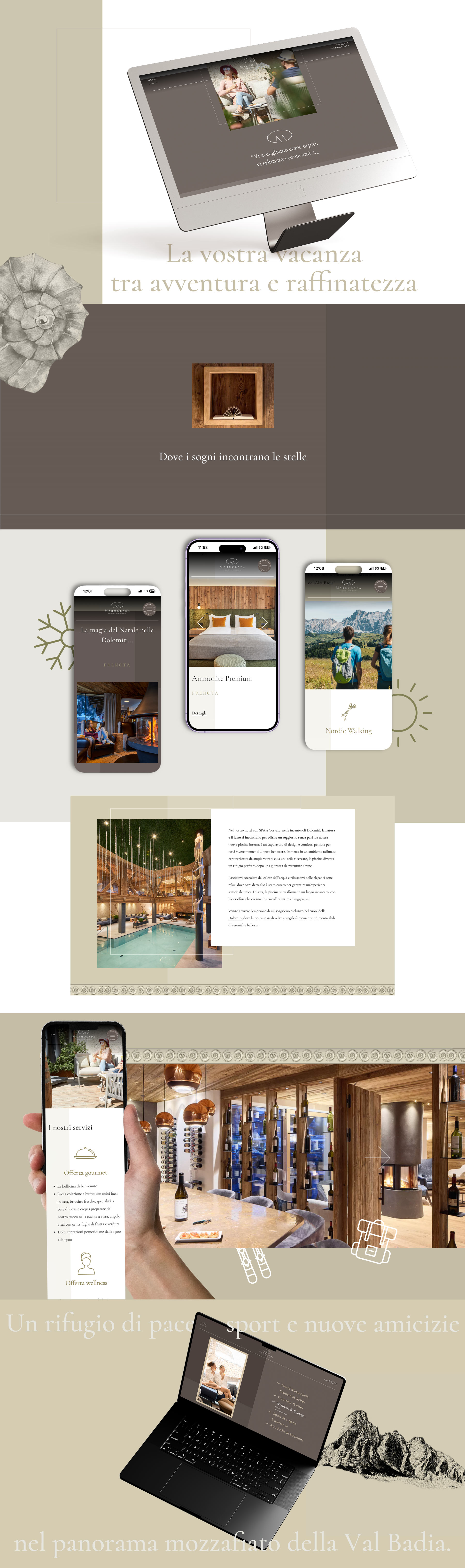 Per l'Hotel Marmolada a Corvara in Alta Badia, la nostra agenzia Altea ha concepito una soluzione web innovativa e su misura. Grazie all'analisi approfondita del target di riferimento e della posizione strategica dell'hotel nelle Dolomiti, patrimonio UNESCO, abbiamo creato un sito web che immerge i visitatori in un'esperienza unica e memorabile. Il design raffinato, moderno, sottolinea l'esclusività dell'albergo. Abbiamo ottimizzato la navigazione per garantire facilità d'uso su vari dispositivi e integrato funzionalità interattive per scoprire le amenità dell'hotel. In aggiunta, abbiamo sviluppato campagne Google Ads mirate per aumentare la visibilità online e attirare un maggior numero di prenotazioni. Le informazioni dettagliate si servizi e sulle attività disponibili sono facilmente accessibili, rendendo la piattaforma un punto di riferimento per ospiti e interessati.