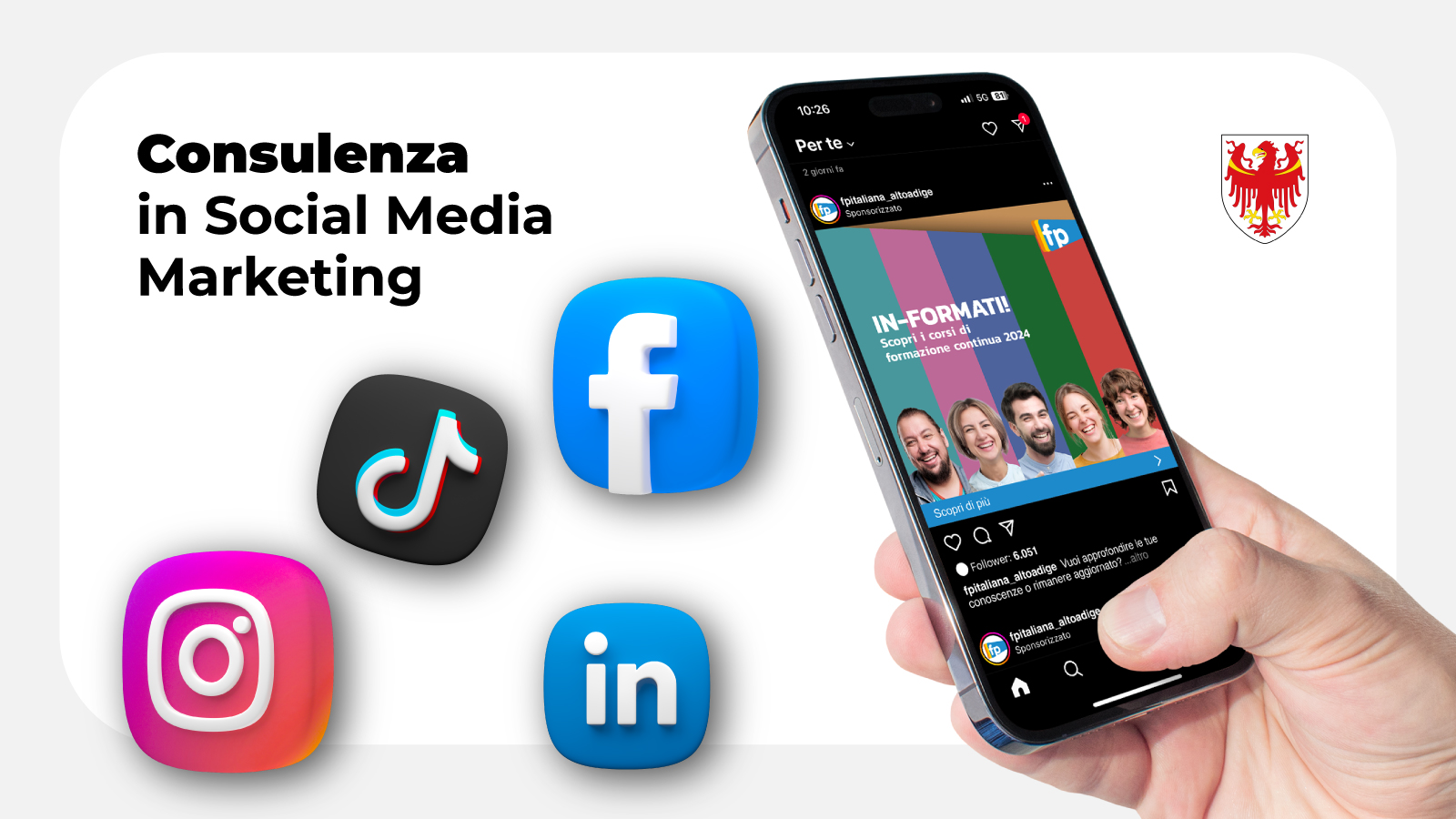 Offriamo il nostro supporto e la nostra esperienza alla Provincia Autonoma di Bolzano attraverso campagne pubblicitarie e Social Media Marketing.