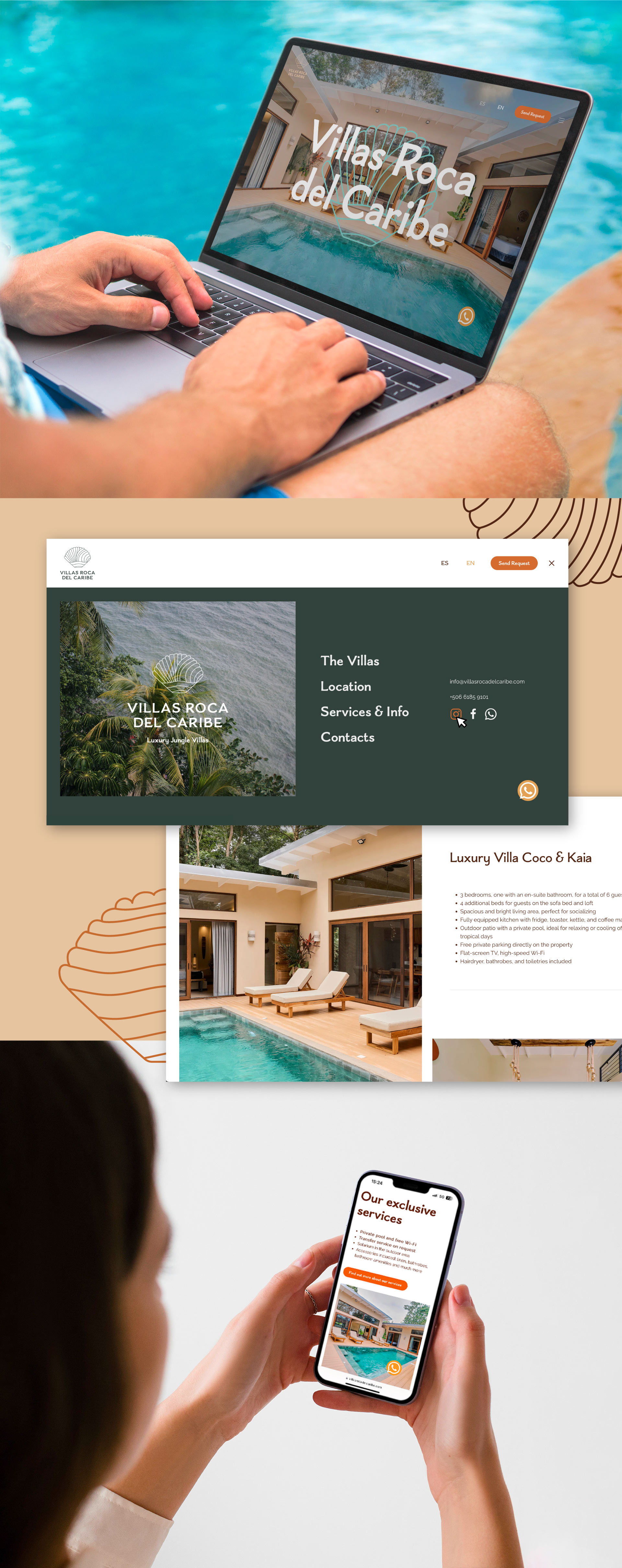 Per questa realtà turistica, situata nel cuore della costa caraibica della Costa Rica, abbiamo sviluppato un progetto semplice, funzionale e innovativo, capace di emozionare. L'obiettivo principale del sito è fornire informazioni chiare, dettagliate e facilmente accessibili sulla località, le ville e i servizi.