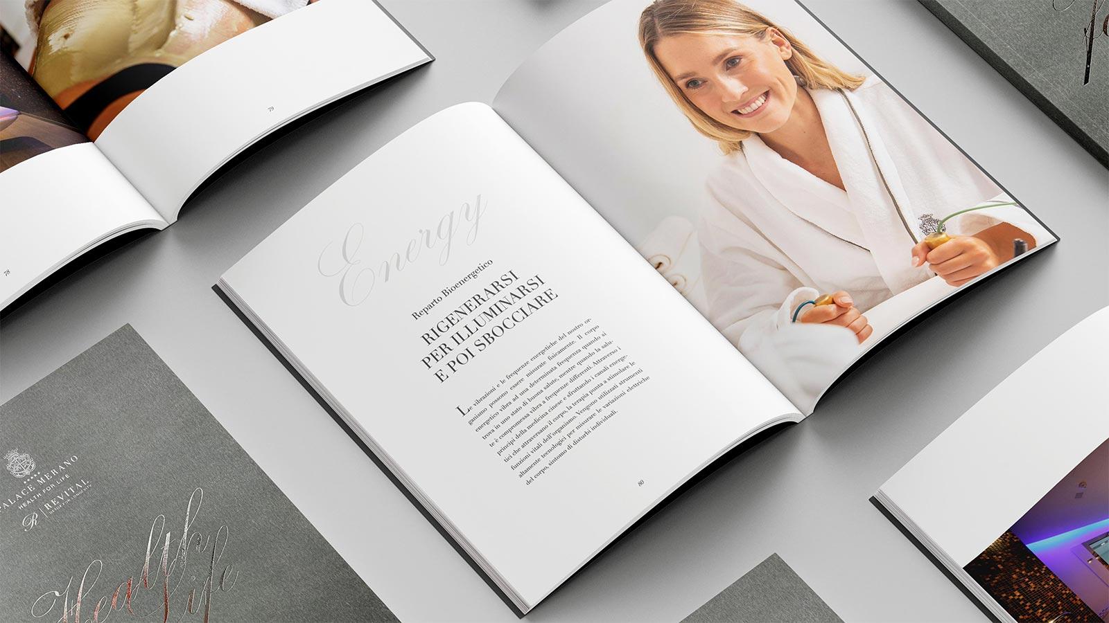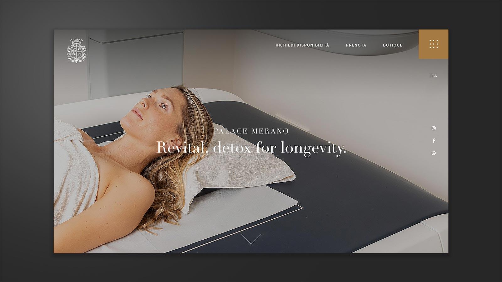 Rinnovato e riformulato insieme all’immagine dell’azienda, dal restyling del logo Palace alla comunicazione, dai prodotti agli articoli di hôtellerie, dalle infografiche alla creazione di un nuovo brand, è nato così il nuovo marchio “Revital”. La richiesta era quella di dare un nuovo volto alla struttura, posizionando il loro “Metodo Revital” nel settore dei Wellness Medical Hotel.